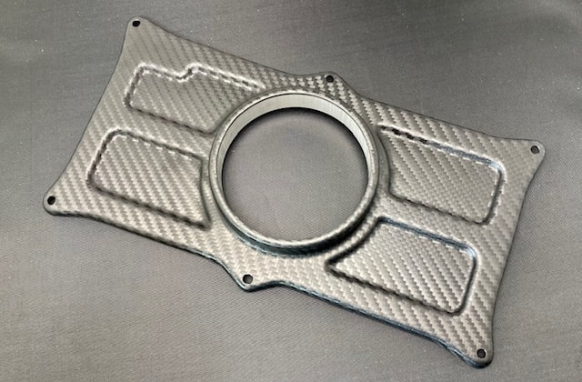ベース部は新たに型を製作し、カーボン柄のABS樹脂製として軽量化とコストダウンを達成致しました。