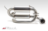 本製品ではストレート構造を採用しており、サイレンサーをメインとサブの大小2種を配列することにより、消音・高回転時の抜け・低回転時のトルク増を達成しております。