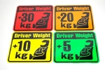 そこで、御自分の体重が基準の55kgよりも何kg重いのかをスーパーGTレースのウエイトハンデのように掲示するステッカーを製作致しました。