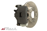 ローターは写真のスリット有りと無しがあります。キャリパー、ローター、パッドの重量は純正に比較して片側で約500g弱重くなりますが、ローターの放熱性が良くなるので、ハブへの熱害が低減されることやパッドの面積が増えるためコントロールしやすくなります。