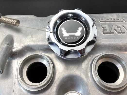 これだけのパーツならば良く似た物は他社からもリリースされていると思いますが、弊社のビート専用のエンジンオイルキャップはレース等の過酷な使用状況でも緩んで外れることが無い様、緩み防止のステンレス製スプリングを掛けられる様に穴を多数設けています。(緩み防止のスプリングとベースボルトが付属致します。)