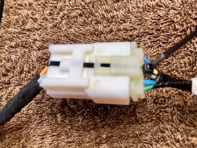 取付けは、運転席側の場合はウィンドウスイッチ裏の黒色の5極カプラーに挿入されている車体側配線のメスカプラーを外していただき、本商品のメスカプラーをスイッチに繋ぎ、オス端子のある白色の5極カプラーに最初に取外した車体側のメスカプラーを繋げて最後にリレー本体に7極カプラーハーネスを挿すだけです。