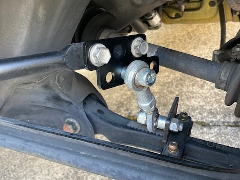 ・左右ロアアームに製品のブラケットをそれぞれ付属のM6ワッシャー組込みボルトを使用して仮固定して下さい。(画像参照)