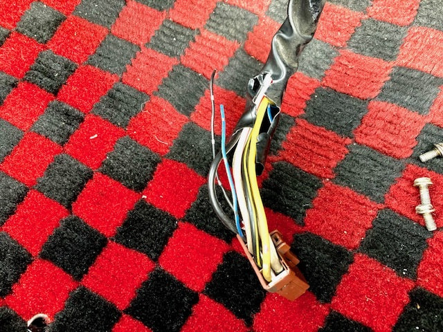 ⑤ 元のハーネスの中央辺りを上方に固定しているタイラップ(茶色)を切断し除去して下さい。元のハーネスがほぼ外れた状態になります。