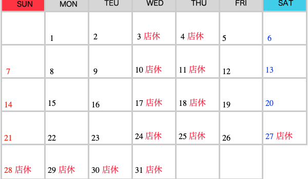 • 休日:毎週水曜日・木曜日&イベント・レース日