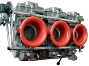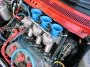 このTODAYに使用している秘密兵器が、何を隠そう「フラットCR3連レーシングキャブレター(※左の写真)」なのです。単車の世界ではかなり有名なレース用キャブレターなのですが、その昔、ホンダの名車のS800も同じ京浜製のレーシングキャブレターをレースで使用していました。現在、TODAYでのセッテイングはほぼ出ていますので、レスポンス・パワー&トルク感・音など、燃費と低温時の始動性(慣れれば問題無いですが)という点を除けば、最高に楽しいパワーユニットとなっています。