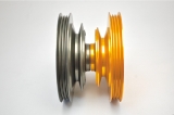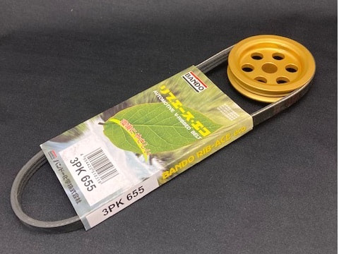 ノーマルプーリー比約13.5%小径化していますので、エアコンコンプレッサー回転数と致しまして、約10%強の減速が可能です。