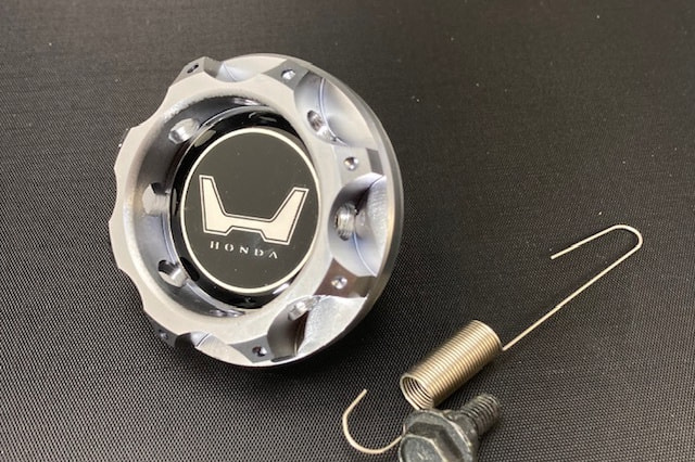 これだけのパーツならば良く似た物は他社からもリリースされていると思いますが、弊社のビート専用のエンジンオイルキャップはレース等の過酷な使用状況でも緩んで外れることが無い様、緩み防止のステンレス製スプリングを掛けられる様に穴を多数設けています。(緩み防止のスプリングとベースボルトが付属致します。)