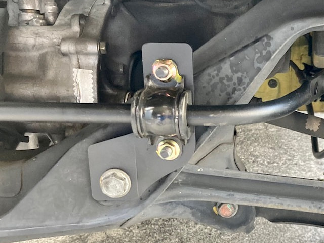 ・スタビライザー本体の左右ホルダーとメンバー側のブラケットを付属のM8フランジナットで仮固定して下さい。(画像参照)