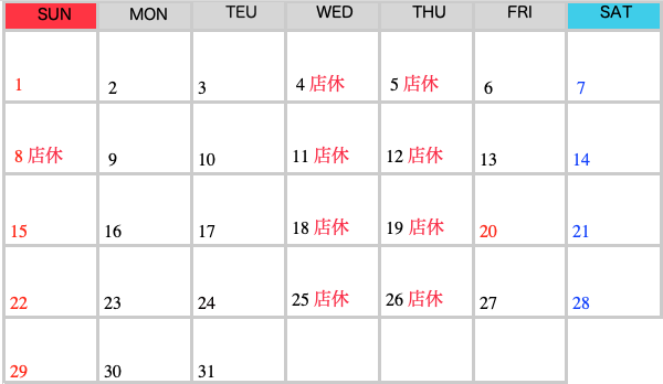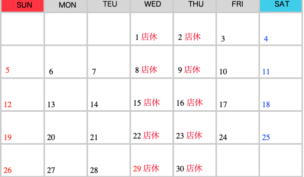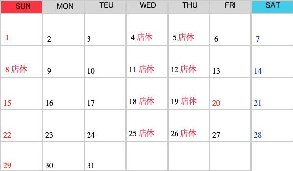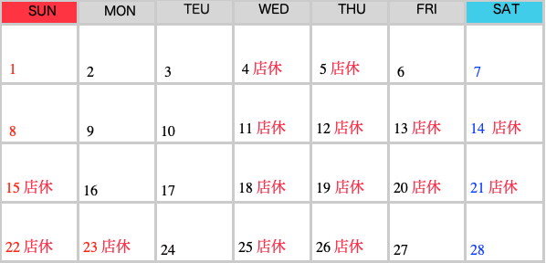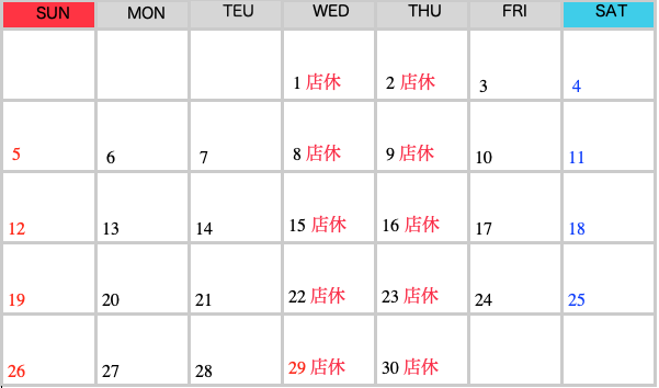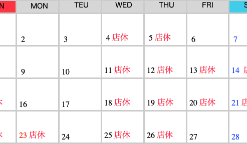 RSマッハ 営業カレンダー