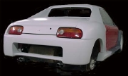 2.に関してですが、今回全てのボディパーツの製作をカーボンやFRPで行う予定ですので、リヤフェンダーを除いて全て純正のスチールやP.Pと交換ということになります。従いまして、かなり軽量化できると考えています。ちなみにドアは純正と同じ形状で製作します。